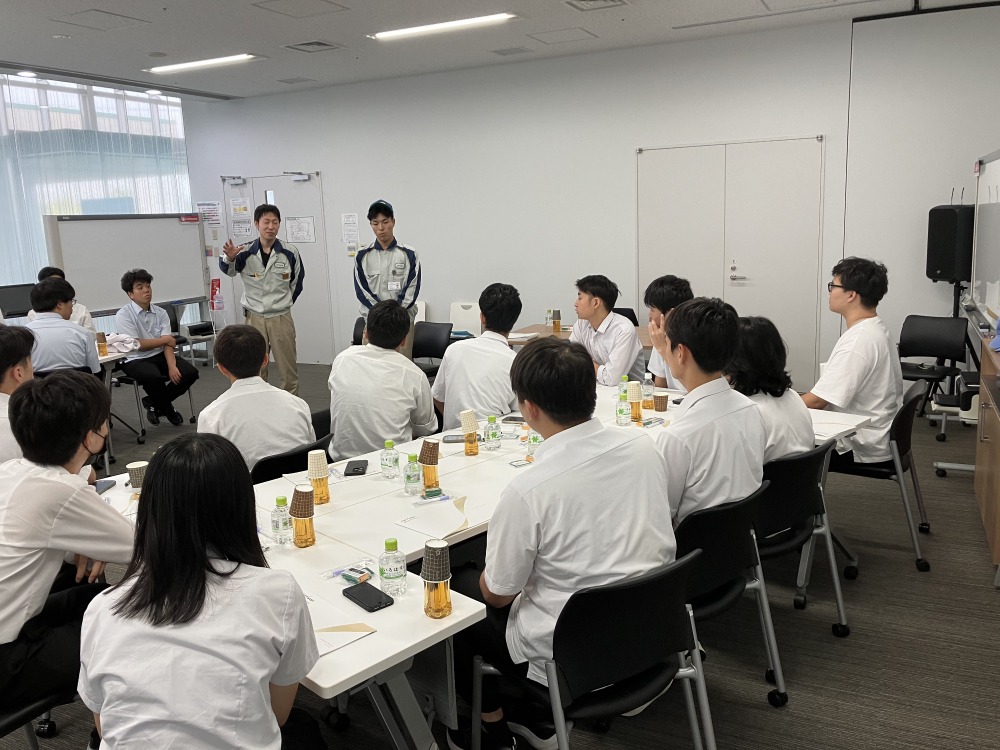 蓄電池の製造現場の見学だけでなく、高専OBとの座談会も催していただき、高専から就職をしてどのような働き方をするのかなどを説明して頂きました。
