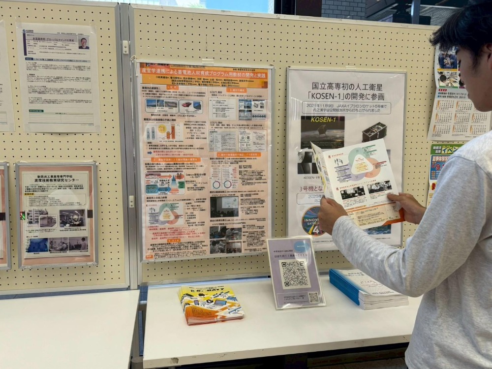本ロビー展では、新居浜高専の研究・活動紹介パネルと並び、Kc-BATTが取り組む蓄電池分野の人材育成について紹介しました。地域産業との連携、教育プログラムの概要、そして次世代エネルギー技術としての蓄電池の重要性など、来場された新居浜市民の皆さまに向けて分かりやすく発信しました。